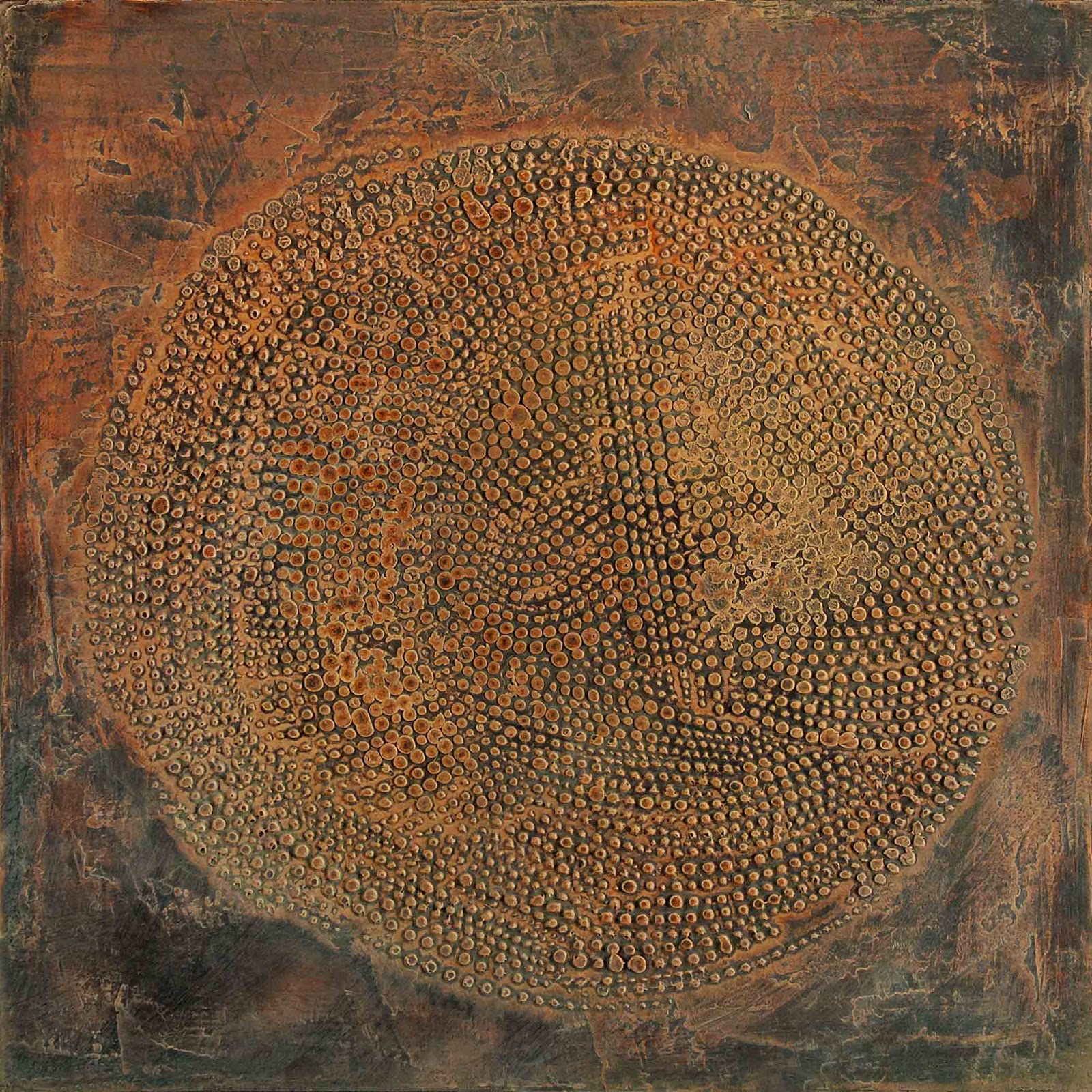 A most látható Ősformák sorozat ehhez a műcsoporthoz kapcsolódik, ugyanakkor korábbi sorozataival is összefüggést mutat, hiszen a festő ábécéjének újabb betűit, alapfogalmait, illetve a régről ismert alapjelek újabb változatait, újra fogalmazott megjelenítéseit láthatjuk ezeken az alkotásokon. Másrészt a képek plasztikus, érdes felületei egymásra rétegzett papírtörmelékekből formálódnak. A rétegződés a földtörténet korszakaihoz hasonló, abból okuló, annak tanulságait is felhasználó képépítési folyamat. A műveken az egyes rétegek nemcsak egymásra rakódnak, de el is mozdulnak egymáshoz képest, mindig más és más szeletek kerülnek felszínre, s a folyamat végén egy spirálisan egymásra épülő rendszer alakul ki a részletekből.