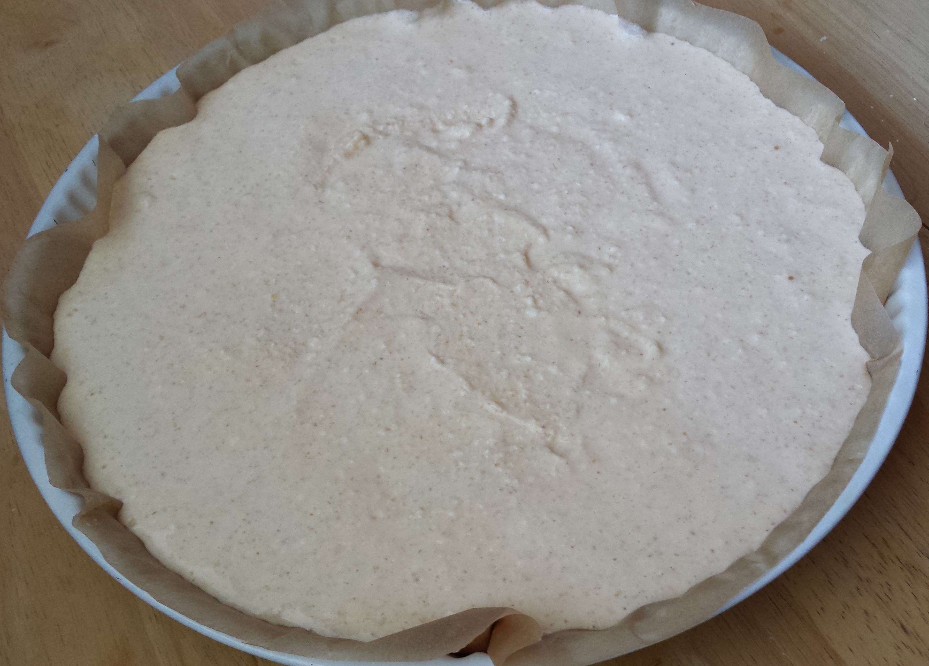 A négy tojás fehérjét külön felverjük, kemény habbá. Ezt egy külön tálba félretesszük. Közben a sütőt bekapcsoljuk (170 C; légkeverés), hogy felmelegedjen, mire elkészülünk az alapanyagok összekeverésével. Ezután a keverőtálba tesszük a négy tojássárgát és keverni kezdjük, majd hozzáadjuk az édesítőszert (sztéviát) és kicsit habosabbra keverjük, majd folytonos keverés mellett beletesszük kanalanként a zabkorpát, a pudingport, a citromhéjat és közben tejjel hígítjuk. Majd hozzáadjuk a túrót és a többi tejet, és addig keverjük, amíg jól összekeverednek az anyagok. Ezután kanállal hozzákeverjük a kemény tojásfehérje habot és végül az egészet sütőpapírral kibélelt kerek tortaformába öntjük.
