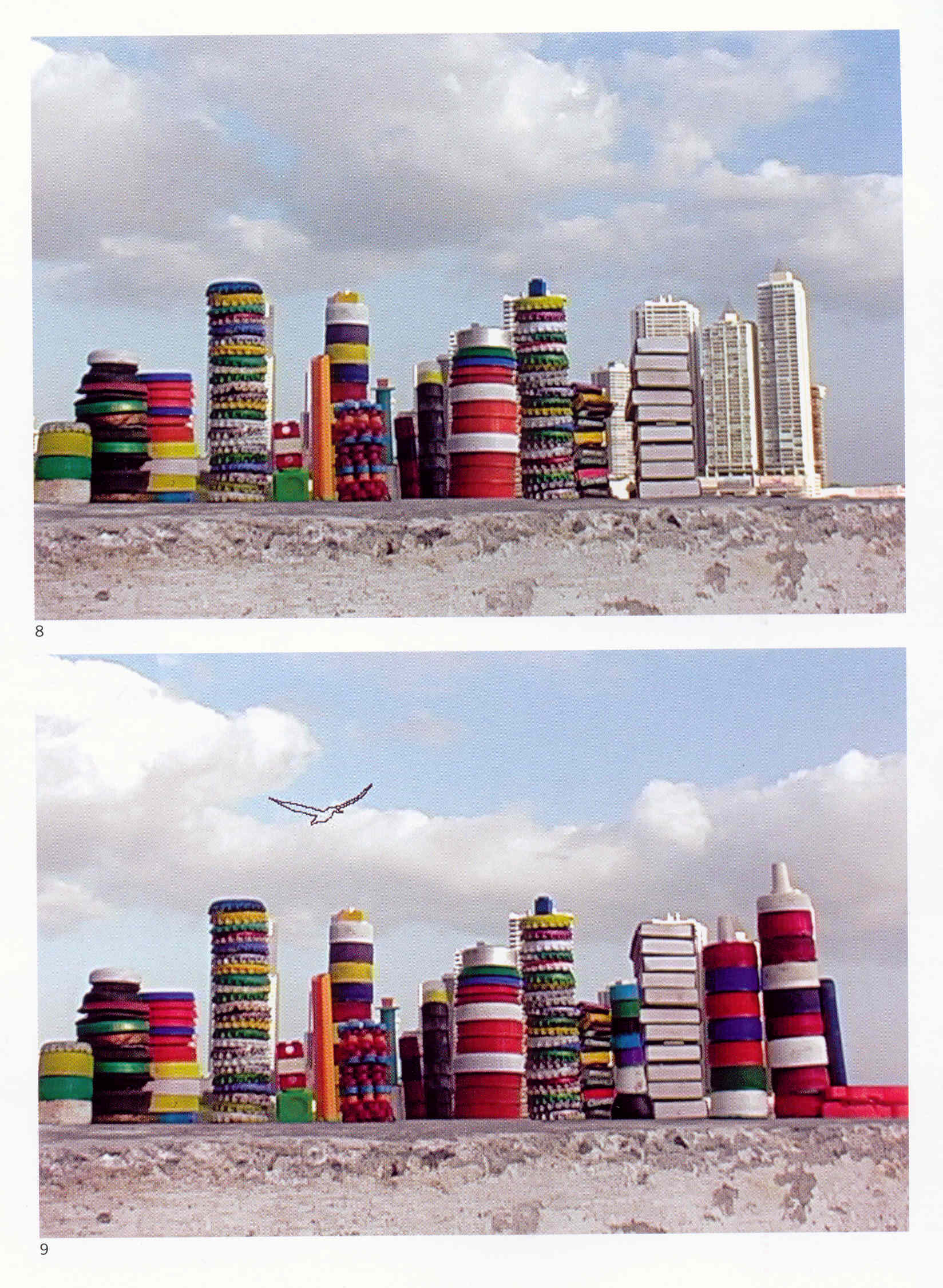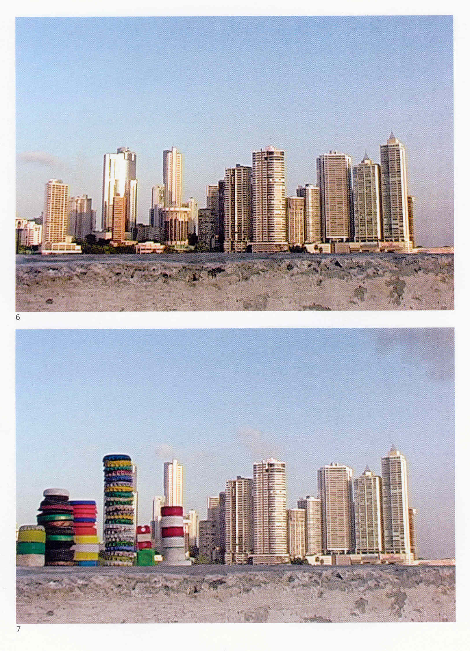 A másik mű az amerikai Donna Conlon (1966) 2 és fél perces Városi fantomok (Urban Phantoms) című DVD-je, amelyen a felhőkarcolók elé tornyozott kupakok és skatulyák fokozatosan eltakarják a monumentális épületeket. Conlon a léptékek összemosásával érzékelteti a mikro- és makrokozmosz történéseinek összefüggéseit, ugyanakkor szellemes, de egyértelmű ökológiai, környezetvédelmi utalást is tesz.