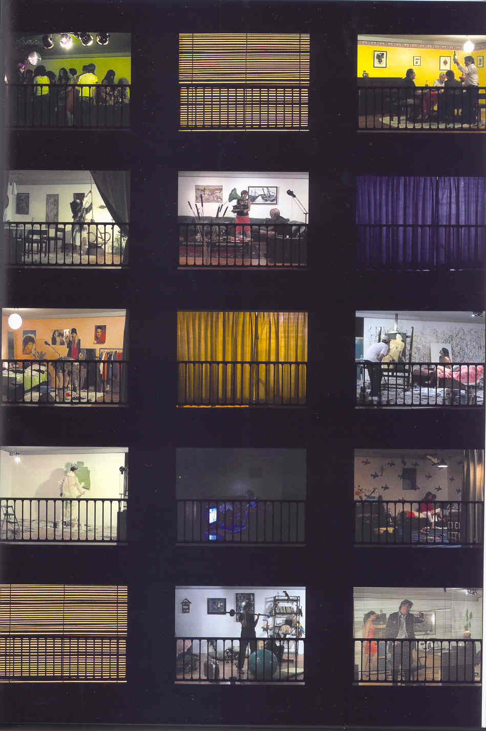 Az argentin Leonardo Erlich (1973) szimbolikus jelentést hordozó úszó medencéjét láthattuk négy éve, most a leskelődés által szociológiai betekintést ad egy ház ablakain keresztül az ott lakók életébe. Bemutatott, La Vista című művében a lazán leengedett reluxa vízszintes osztásai között (vetített kép segítségével) megleshetjük a „szomszédok”, a szemközti ház lakóinak mindennapjait: a jókedvű baráti társaságot, az épp alkotói válságba jutott írót, a veszekedő házaspárt, az öltöző-vetkőző lányokat stb.. A mások lakásaiba való bepillantás, a leskelődés lelkifurdalással terhes, de izgalmas élményén túl, általánosságban az intimitás és a nyilvánosság határait nem csak átlépi, de teljesen el is törli.