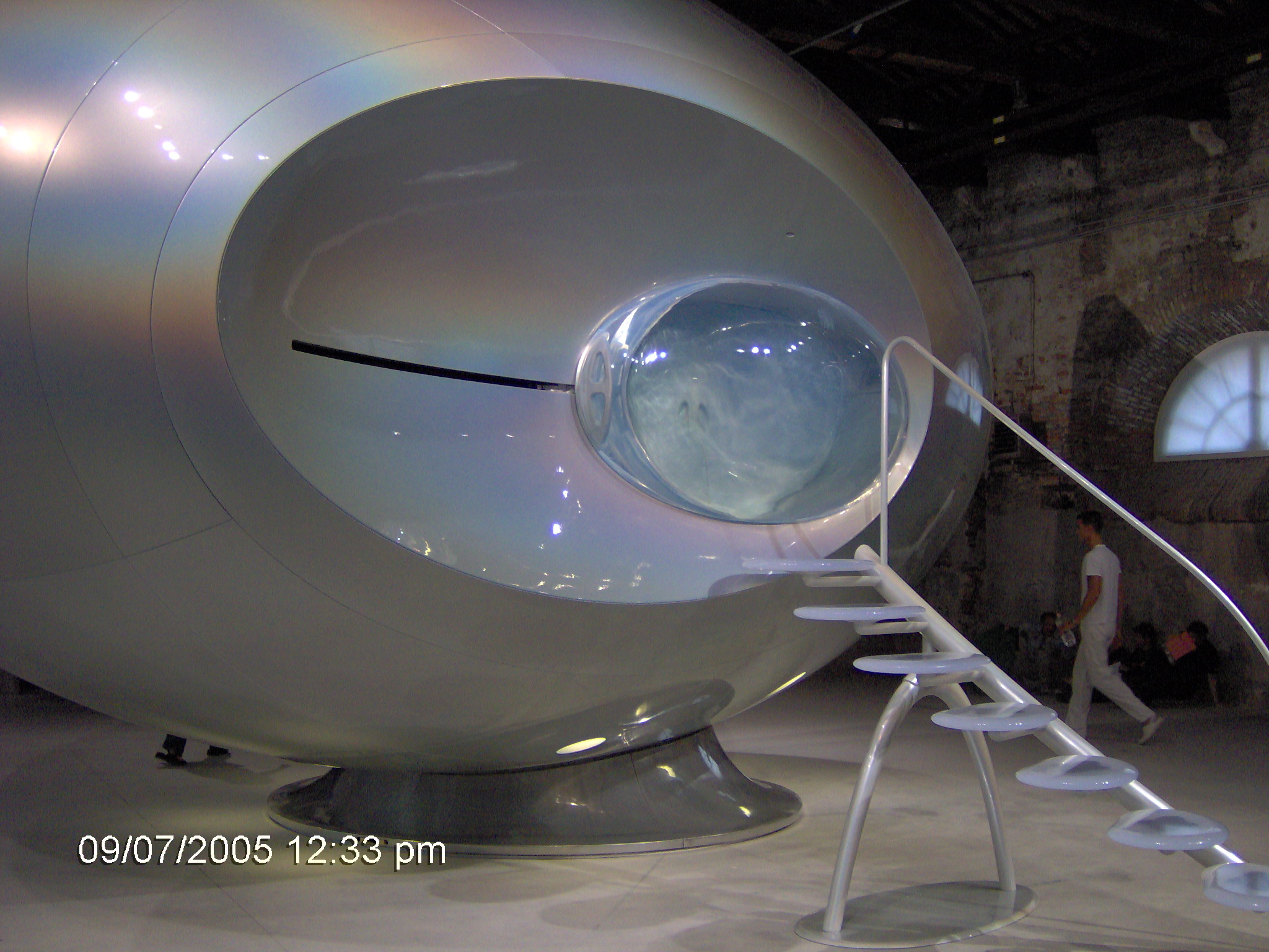 Itt érdemel említést egy másik izgalmas és hatásos kinetikus mű, a japán Mariko Mori (1967) Wawe UFO-ja, amely a relaxáció élményével is megajándékozta a nézőket. Az Arsenaléban felállított futurisztikus jármű steril belsejében a látogatók fejére illesztett készülék segítségével, saját agyhullámaik rajzolta színes görbéket láthattak a kupolaszerűen záruló falfelületeken. Az agyhullámokat komputerek dolgozták fel és projektorok vetítették ki. Mariko Mori katalógusban maga elemzi művének konceptuális tartalmait. Eszerint alkotása azt szimbolizálja, hogy világunkban: a földön, illetve tágabban az egész univerzumban minden élőlény és élettelen anyag végtelen összefüggés-láncolatot alkot. Tulajdonképpen az UFO-építmény azt modellezi, hogy tudományunk és technológiánk állandó fejlődésének köszönhetően mi, emberek képesek vagyunk észlelni az univerzum makrokozmikus jelenségei, és az atomok, kvarkok mikrokozmikus világa között fennálló kapcsolatrendszereket. A világegyetem tágabb viszonyrendszerébe tartozik Földünk, amely a többi a bolygóhoz, csillaghoz hasonlóan porok és gázok örvényléséből született. Az emberiség létezése (és halála) a Föld kozmikus születésének (és ezzel együtt elmúlásának) imitációjaként értelmezhető. Ezzel a munkával Mariko Mori azt szeretné elérni, hogy mindenki a kulturális és politikai határok kiküszöbölésével összeköttetésbe léphessen másokkal. Végül, művét mindazoknak ajánlja, akik egyetértésben, szabadságban és egyenlőségben kívánnak élni a Földbolygón.[11]