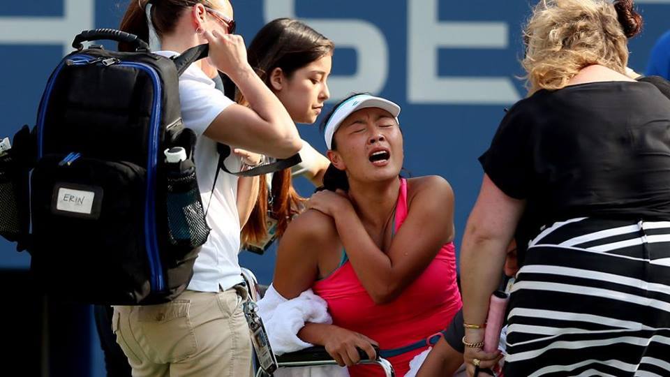 Peng éppen bréklabdához jutott – hirtelen összegörnyedt, lábra sem tudott állni, majd az ütőjére támaszkodott. Ekkor a supevisor és a tréner is bejött hozzá, és szó szerint letámogatták a pályáról. Kis idő múlva kikérte az ápolást, és hosszabb szünet után visszabotorkált a pályára. Nagyon le akarta játszani a meccset, de már alig tudott mozogni (bár így is belekapott az egyik szervába és nyerő returnt ütött). A végén fel kellett adnia a mérkőzést, mint utóbb megtudtuk hőgutát kapott – ugyanis nem csak a szél fújt, de rettenetesen meleg is volt (több mint 30 fok) aznap New Yorkban.