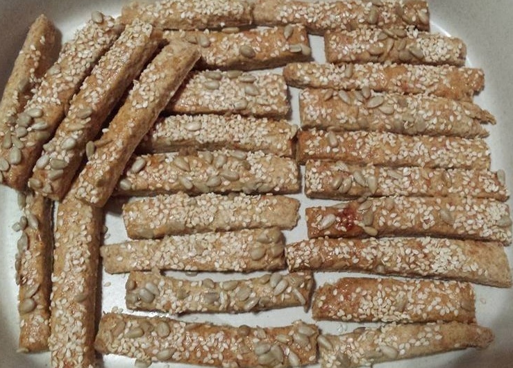 Amikor megkelt a tészta kb. fél centiméter vastagságúra nyújtom. A kinyújtott tészta tetejét megkenem az összekevert egész tojással, és a tetejére szórom a maradék reszelt sajtot. Lehet a tetejére sajt helyett szezámmagot vagy hántolt napraforgómagot szórni. A következő lépés a formázás – ízlés szerint lehet hagyományos pogácsát vagy bármilyen apró süteményformát szaggatni. Én feléből szoktam rudakat is készíteni (derelye- vagy pizzavágóval). A tepsi aljára sütőpapírt helyezek és abba helyezem a rudakat és a pogácsákat, majd előmelegített sütőbe helyezem – légkeveréssel 170 fokon kb. 30-40 perc alatt megsül.
