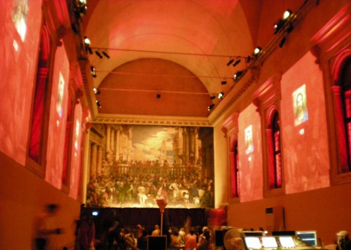 Forgács Péter művének részlete a Magyar pavilonbanA Velencei Biennále november 22-ig tartott nyitva. A biennáléhoz kapcsolódó események közül részt vettem Peter Greneway Paolo Veronese: Kánai mennyegző (1462-1463) című festményére készített projektjének sajtóbemutatóján a San Giorgio templomban.
