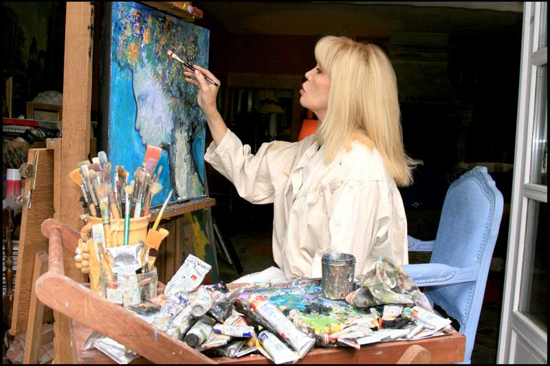 Amanda Lear at work in his house Saint Etienne du Gres