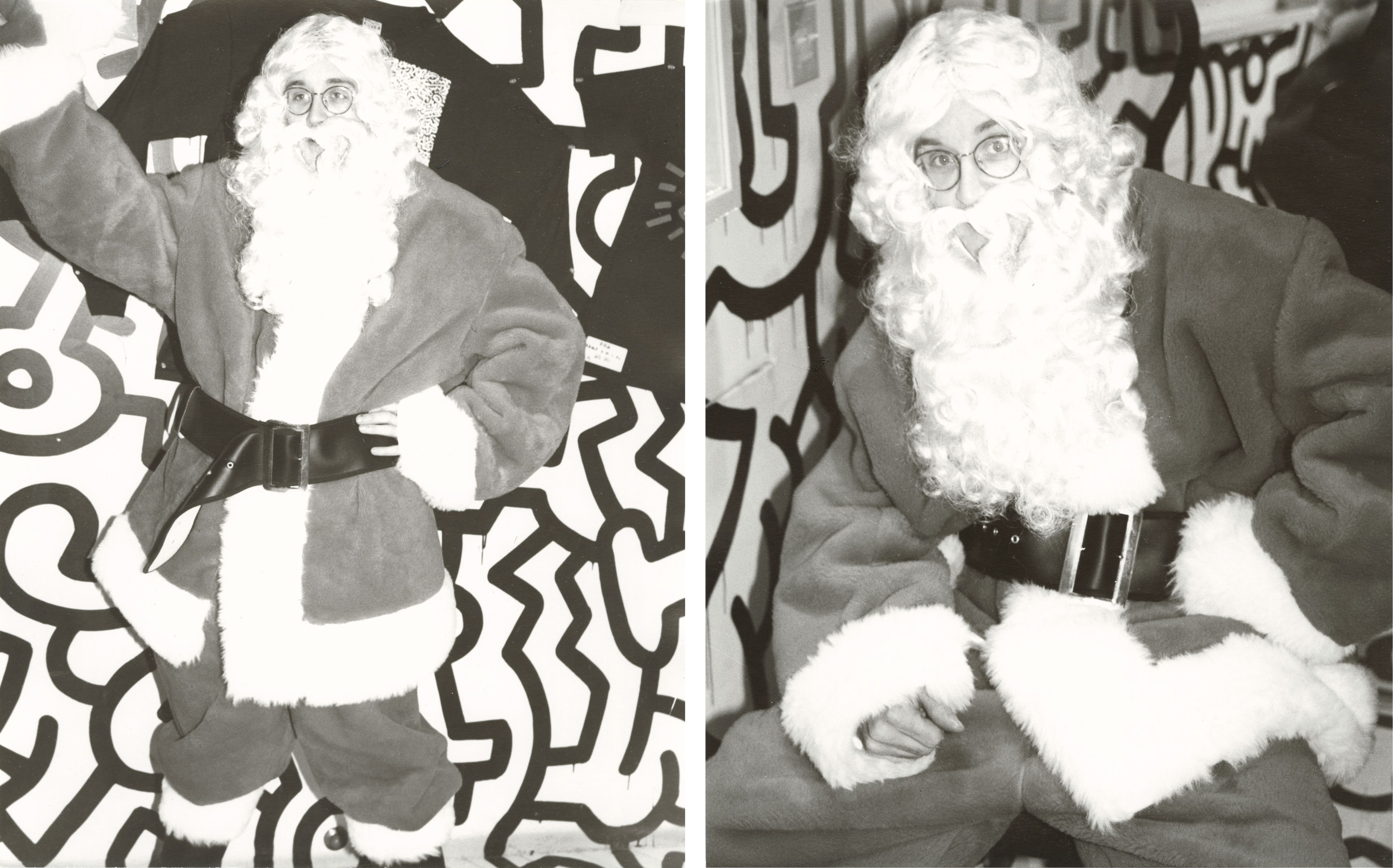 Keith Haring posing in a Santa suit ca. 1984