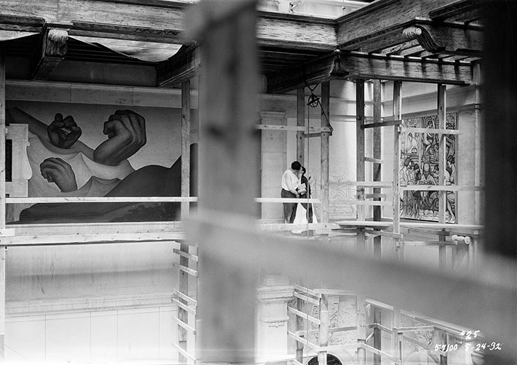 Diego Rivera and Frida Kahlo kiss on the scaffolding in Detroit 1933