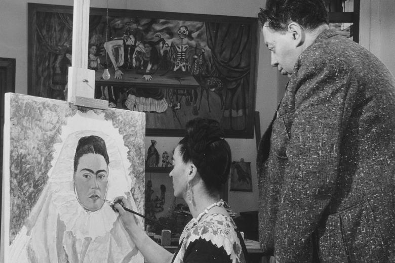 Diego Rivera & Frida Kahlo caught kissing at new workers school in New York City 1933