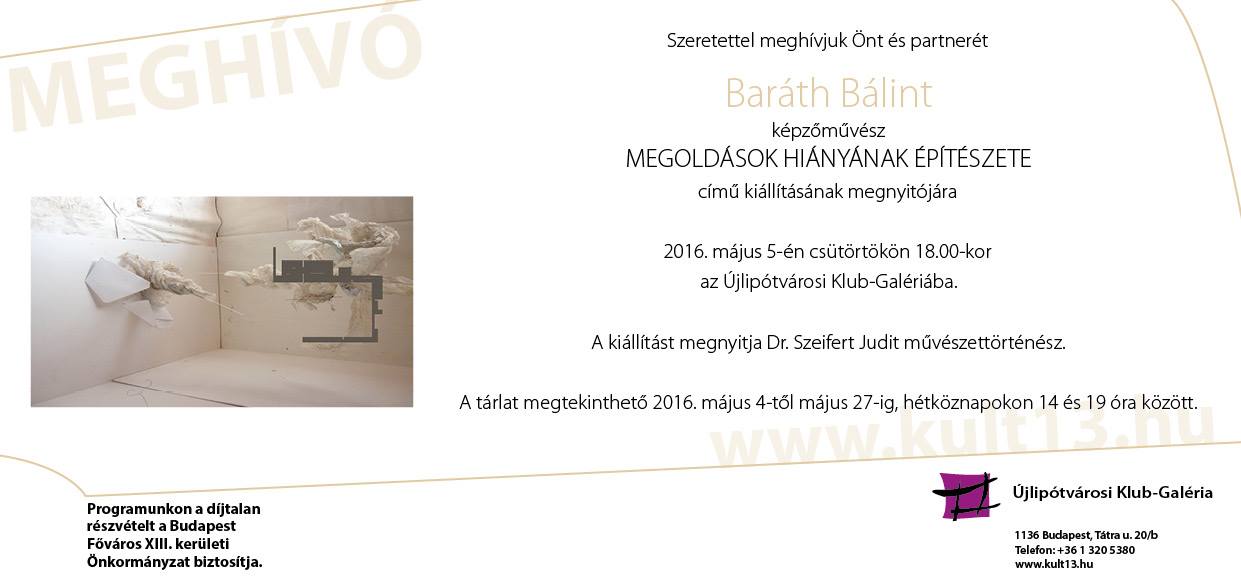 HELYSZÍN | LOCALE Újlipótvárosi Klub-Galéria (1136 Budapest Tátra u. 20/b)