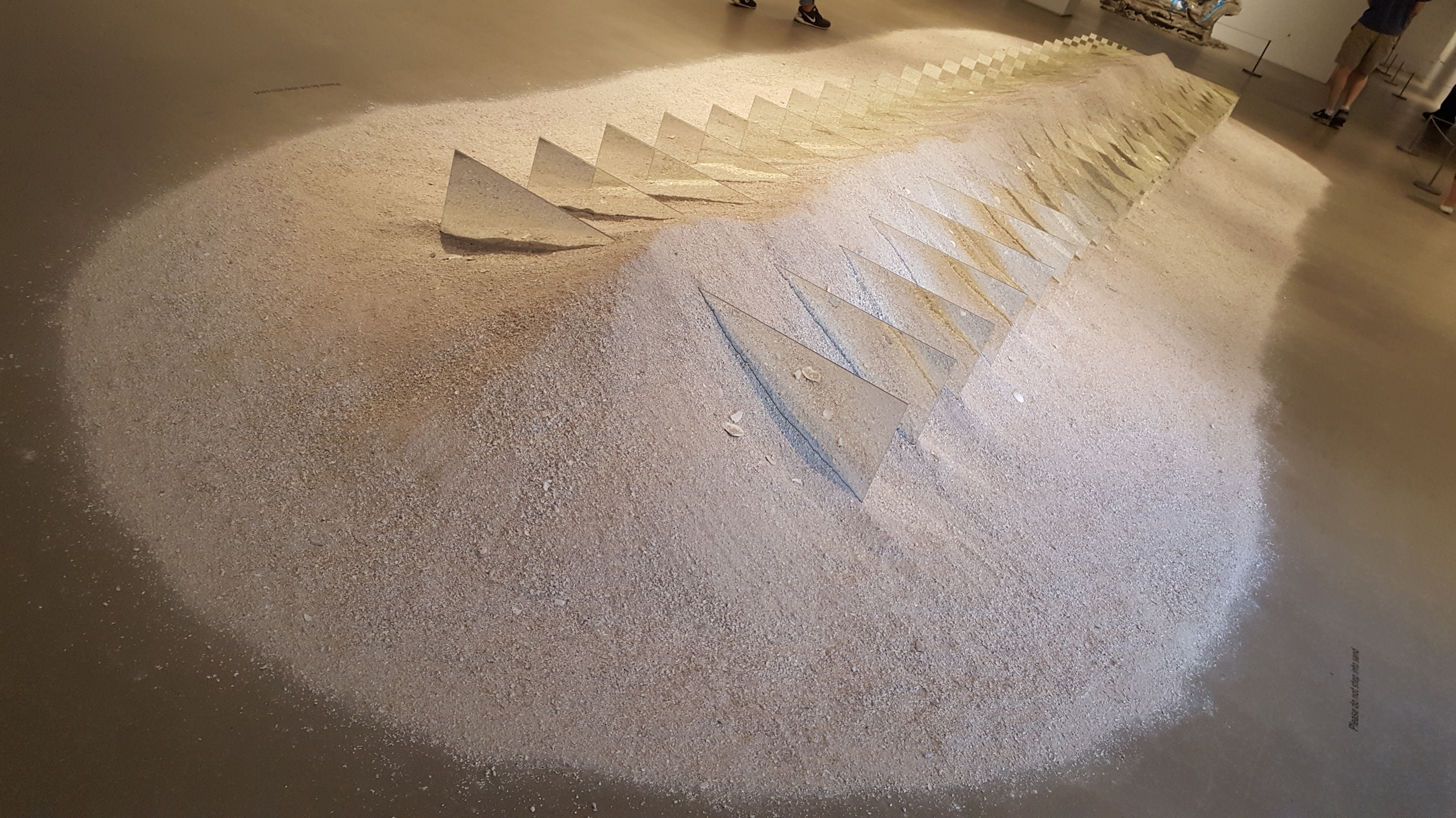 Fifty mirrors, back to back; beach sand with shells or pebbles – Dallas Museum of Art