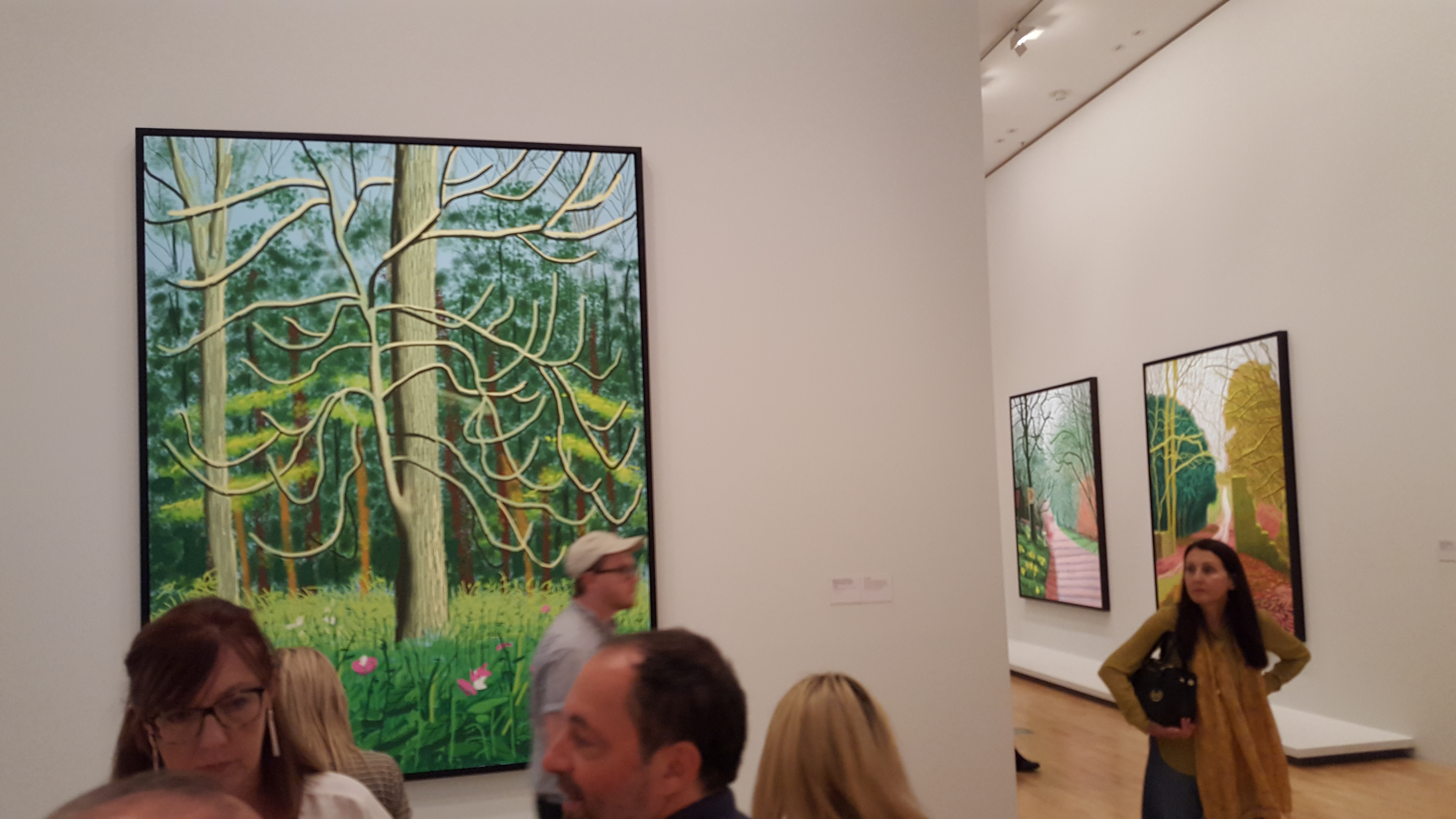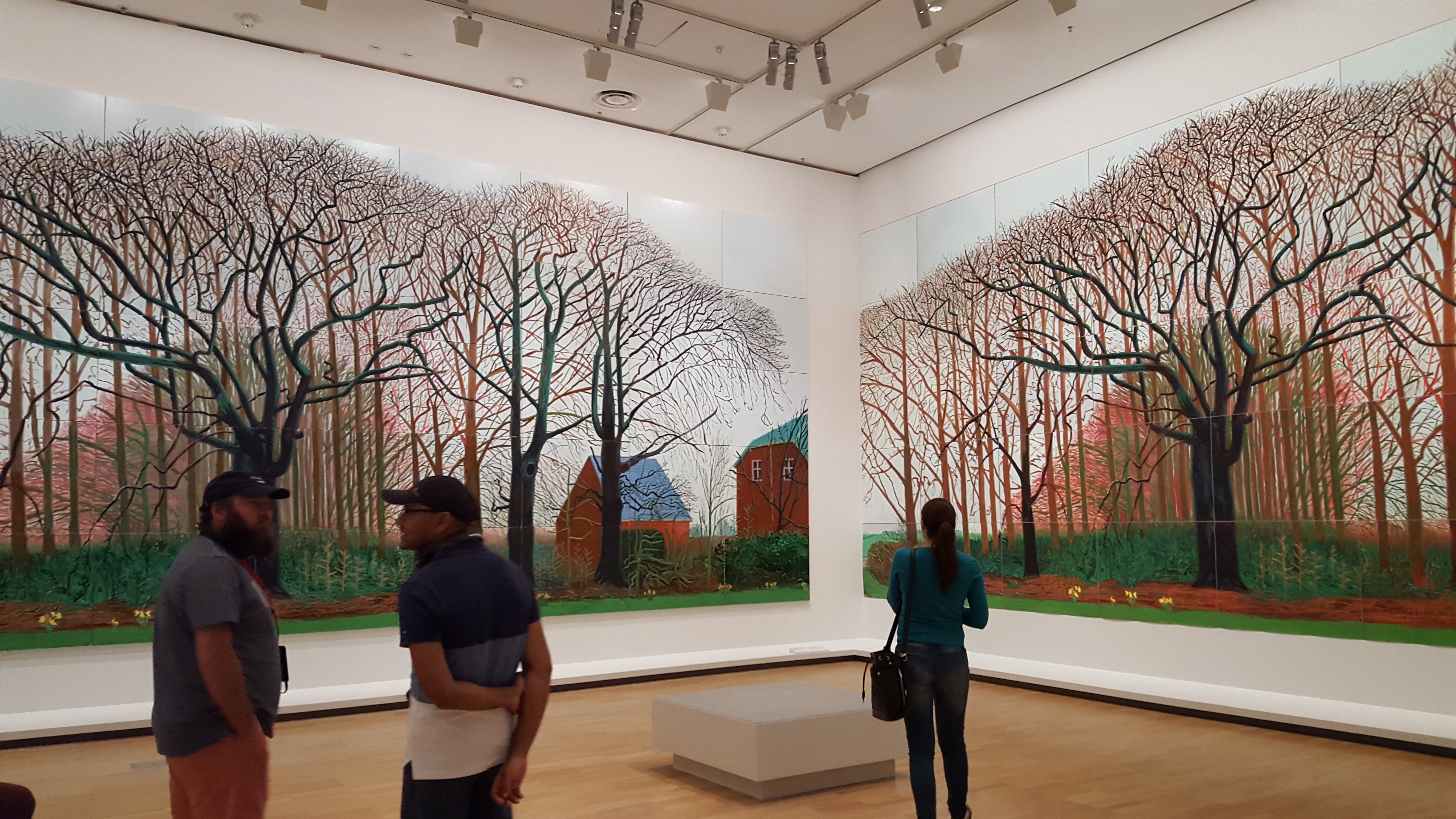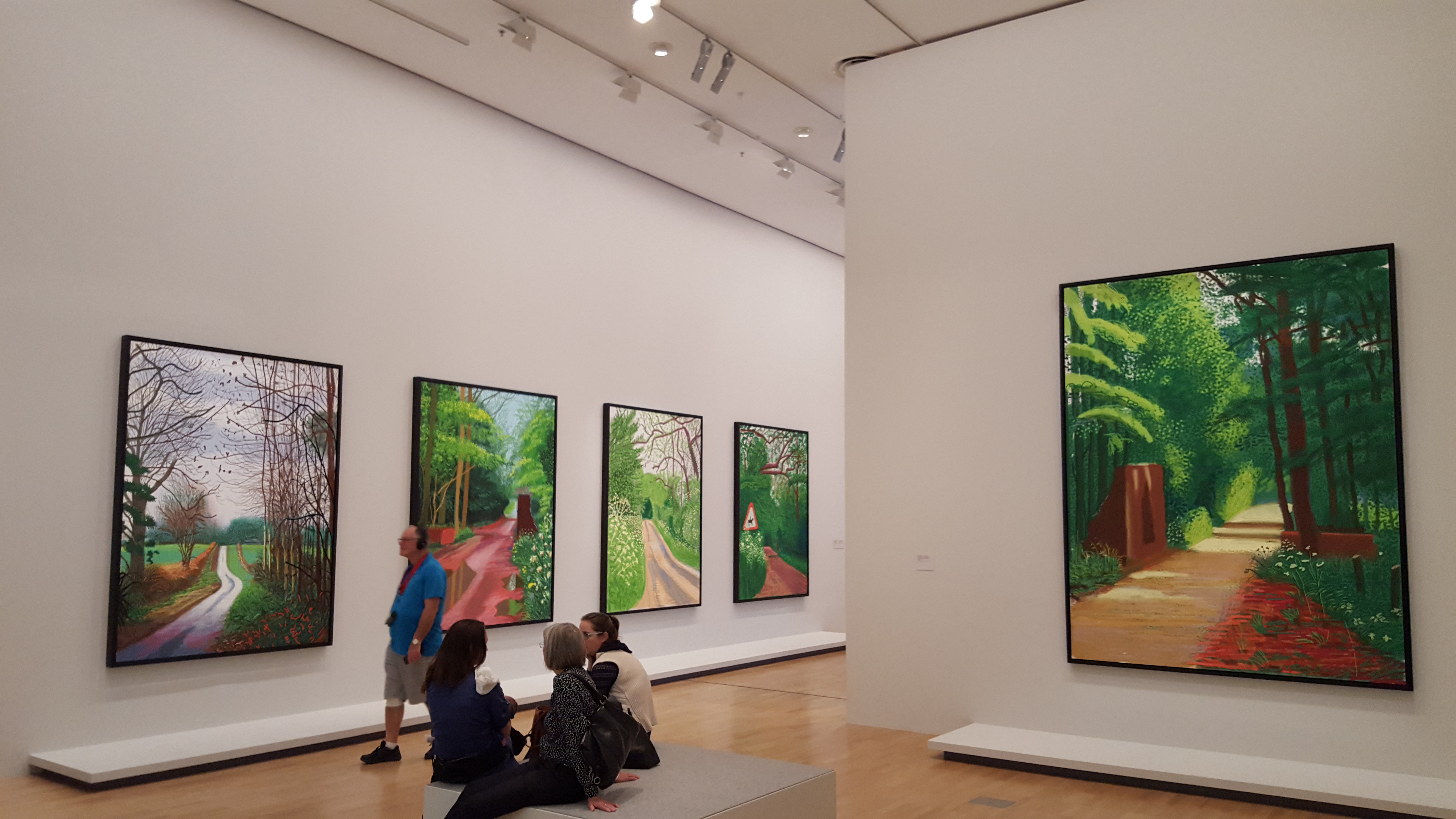 Another highlight is The Four Seasons, Woldgate Woods, a breath-taking and immersive video work showcasing the changing landscape of Hockney’s native Yorkshire, each season comprised of nine high-definition screens.
