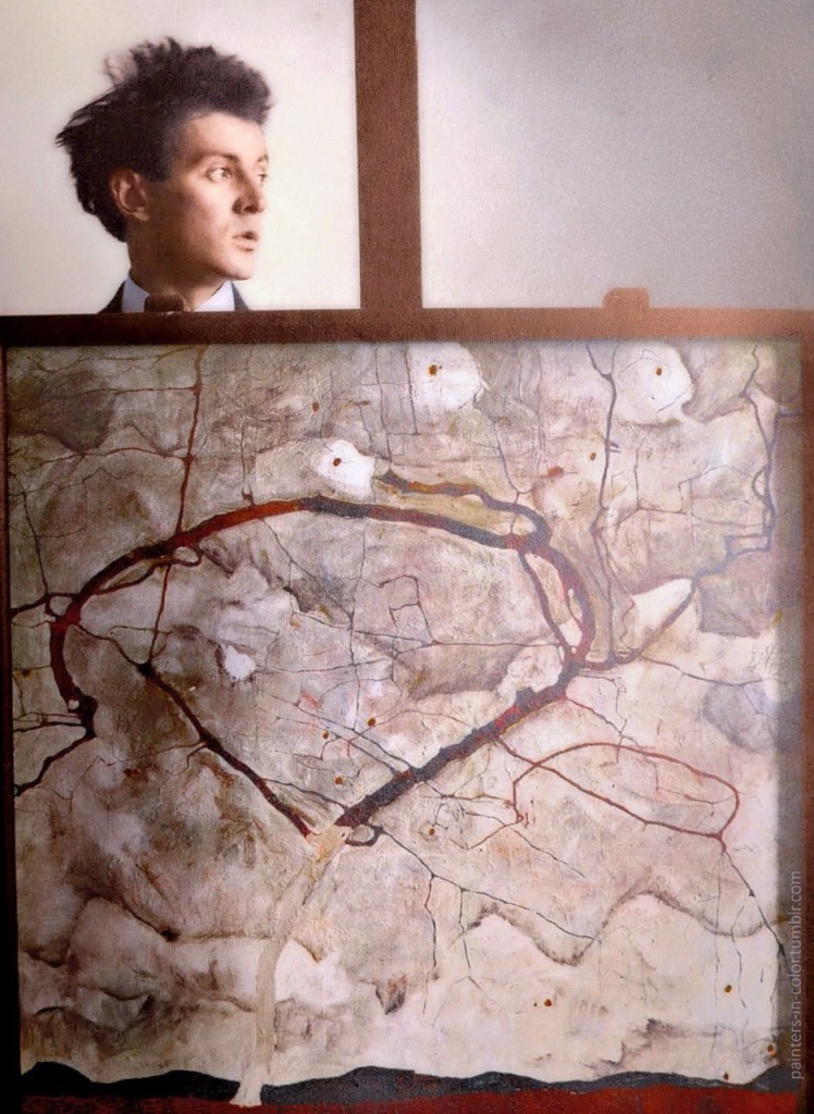 Egon Schiele behind his painting ‘Winterbaum’ 1912