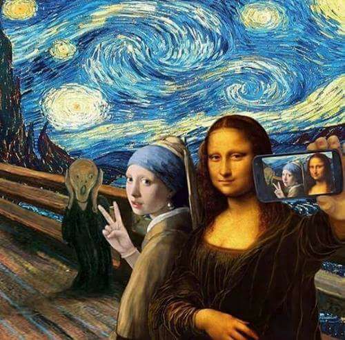 Selfietime! Famous painted persons of Munch, Vermeer and Leonardo posing together