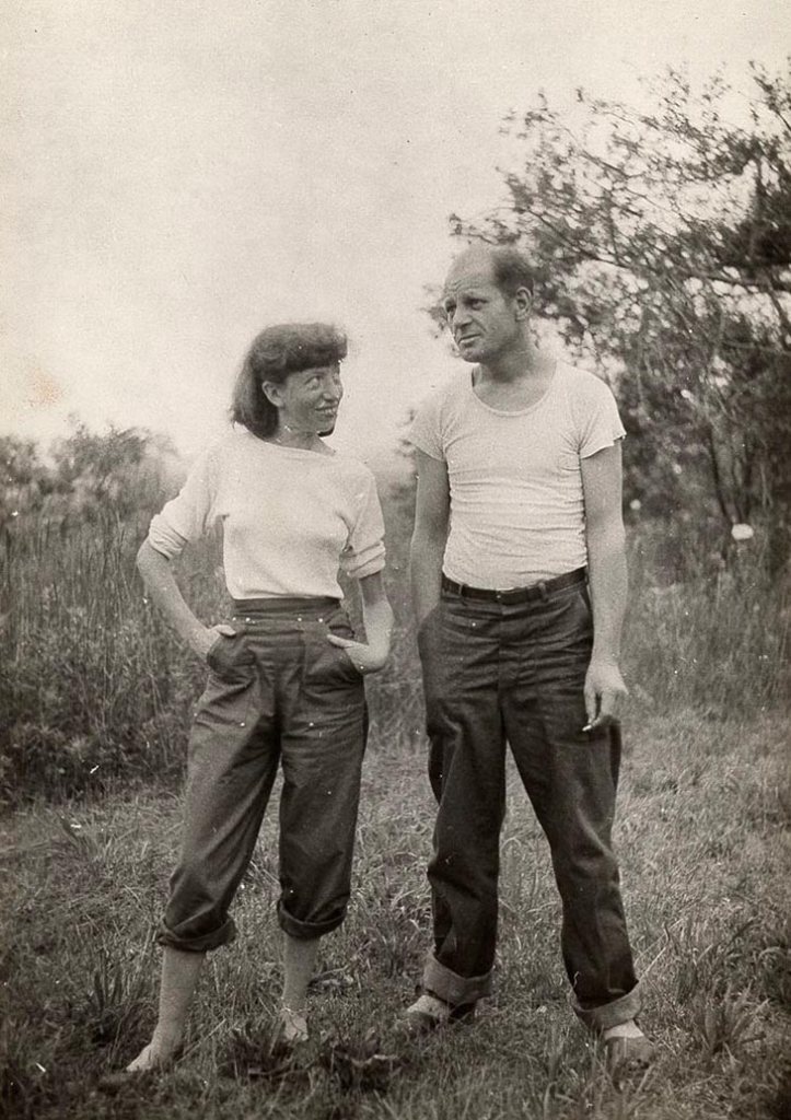 Jackson Pollock and his wife Lee Krasner with theirs dog at their Long Island home 1950s