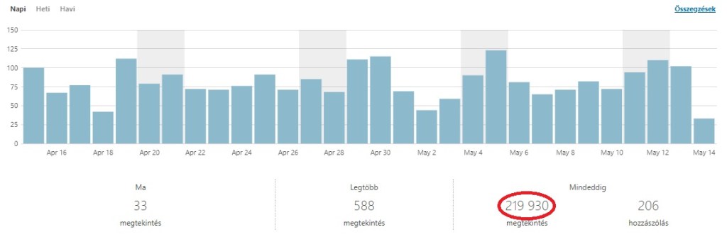 5 years ago, on this day, on 14 May, 2014 I got szeifertjudit.com from my sister. It was only an empty website. Now we have 244 posts, almost 220.000 views and 82.000 visitors. Here You are my statistics and links of the most popular posts (over 1000 views).