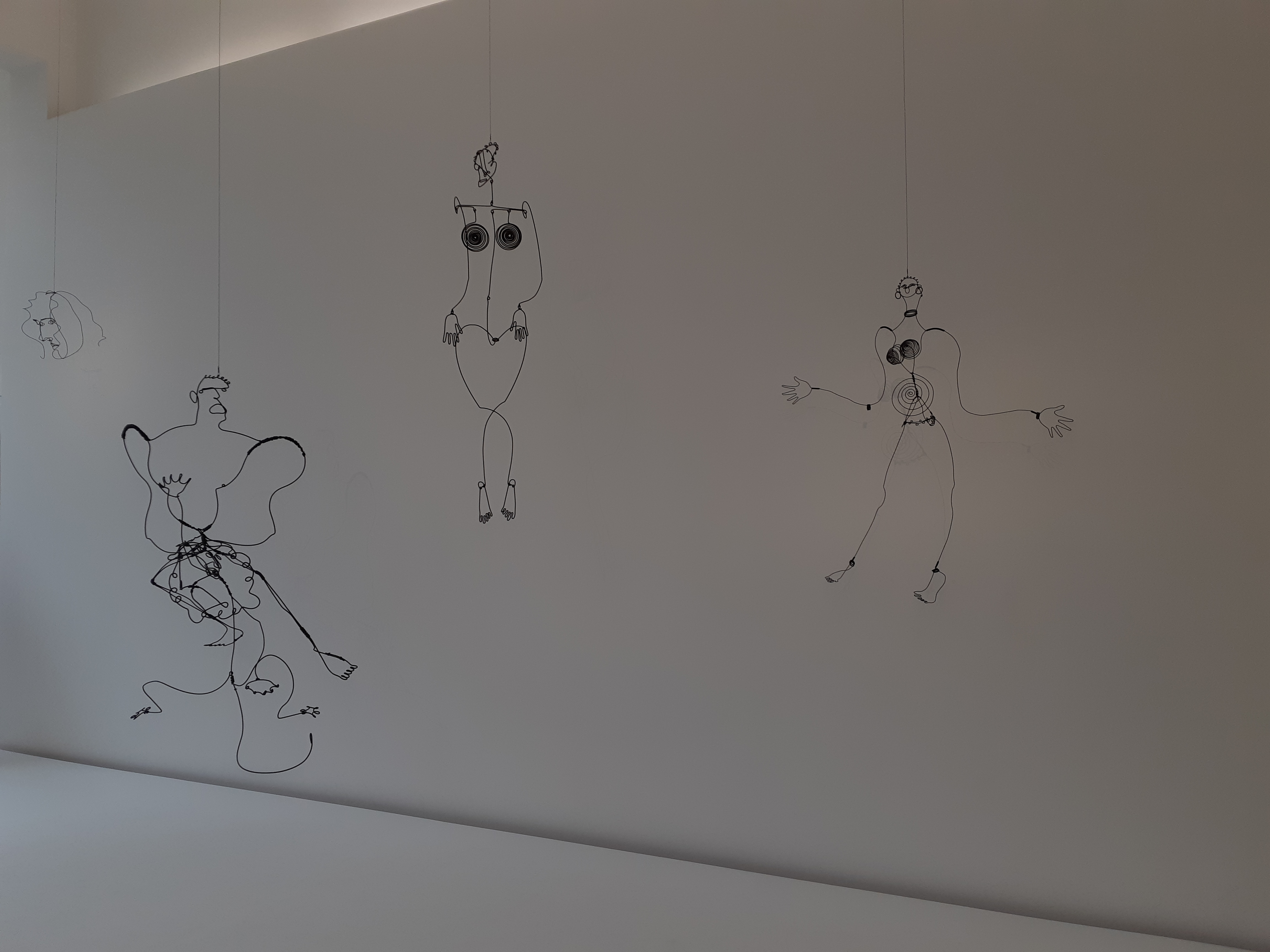 Detail of exhibition with wire sculptures of Alexander Calder