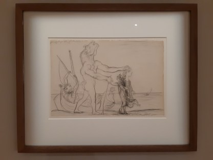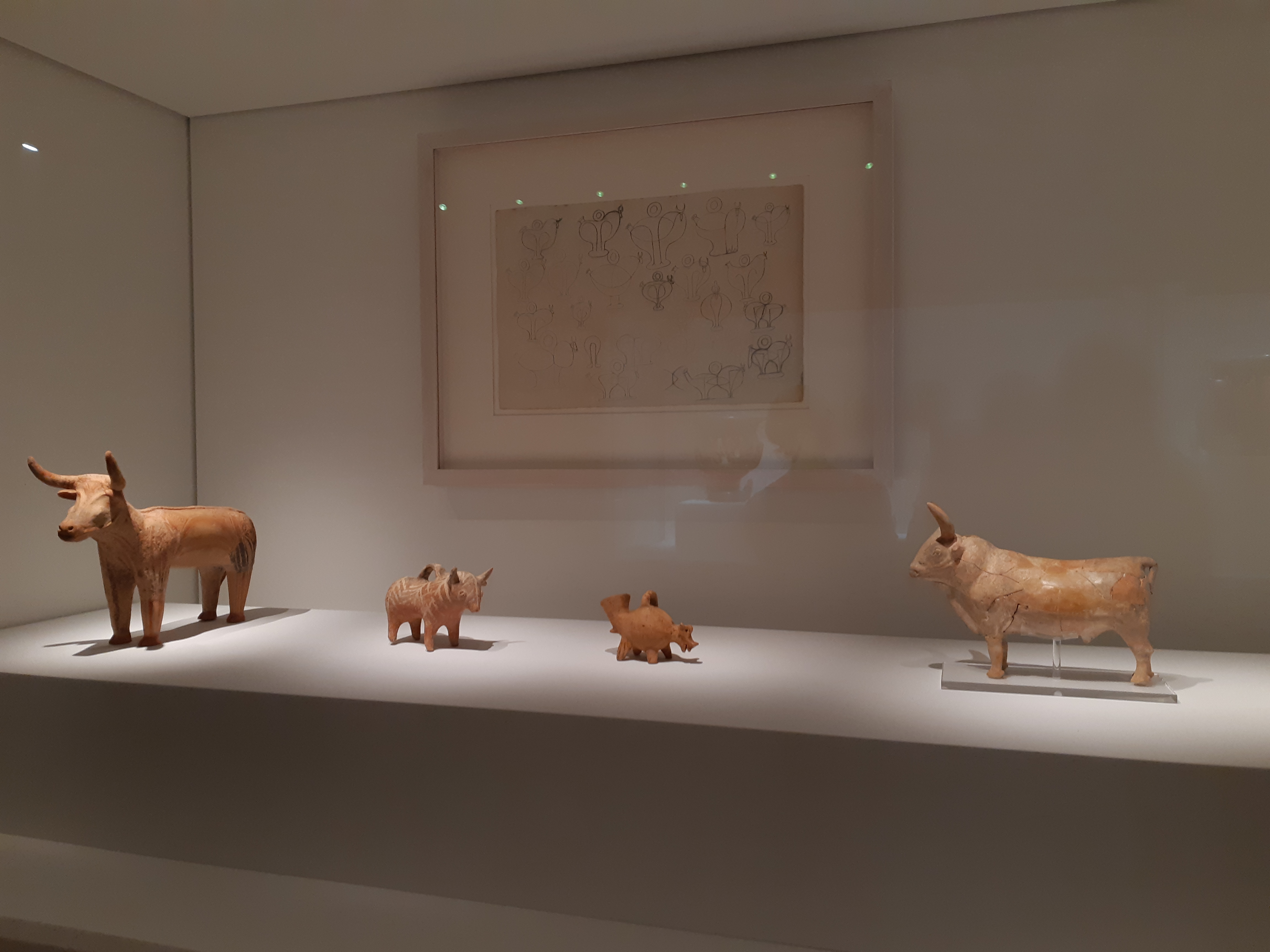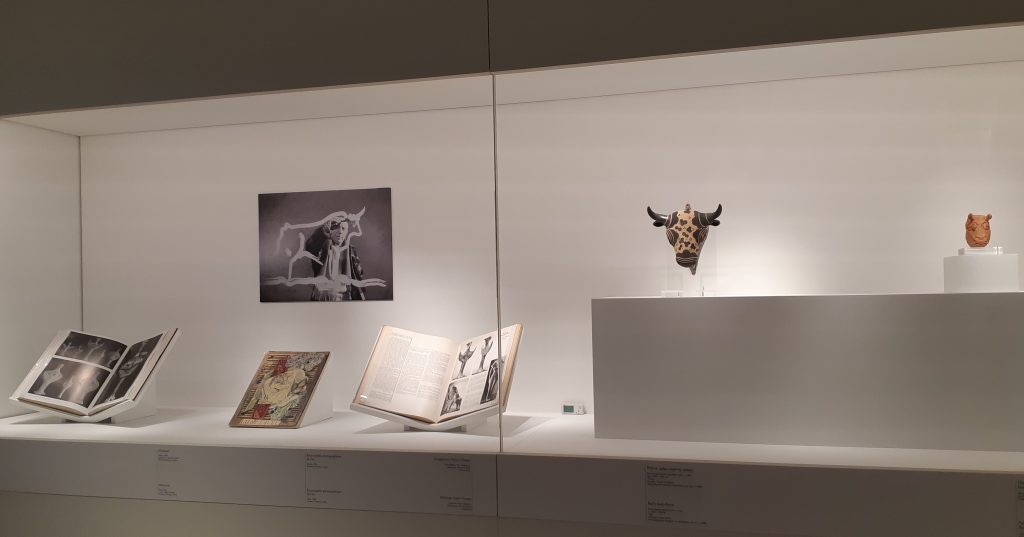 Among the most interesting “pairs” presented in this exhibition are: the white clay Centaur with incised and slip-painted decoration, which Picasso created at Vallauris on 3 January 1953, conversing here with the unique tenth-century BC Proto-Geometric Centaur figurine from Lefkandi in Euboea and a sixth-century BC Cypro-Archaic Centaur. Or Picasso’s Blind Minotaur Guided by a Little Girl by the Sea (Boisgeloup, 22 September 1934), paired with the Κilling of the Minotaur by Theseus on a Late Classical Red Figure calyx krater (340–330 BC) from the National Archaeological Museum or the Torso of a Minotaur statue, a Roman copy of an Early Classical prototype.