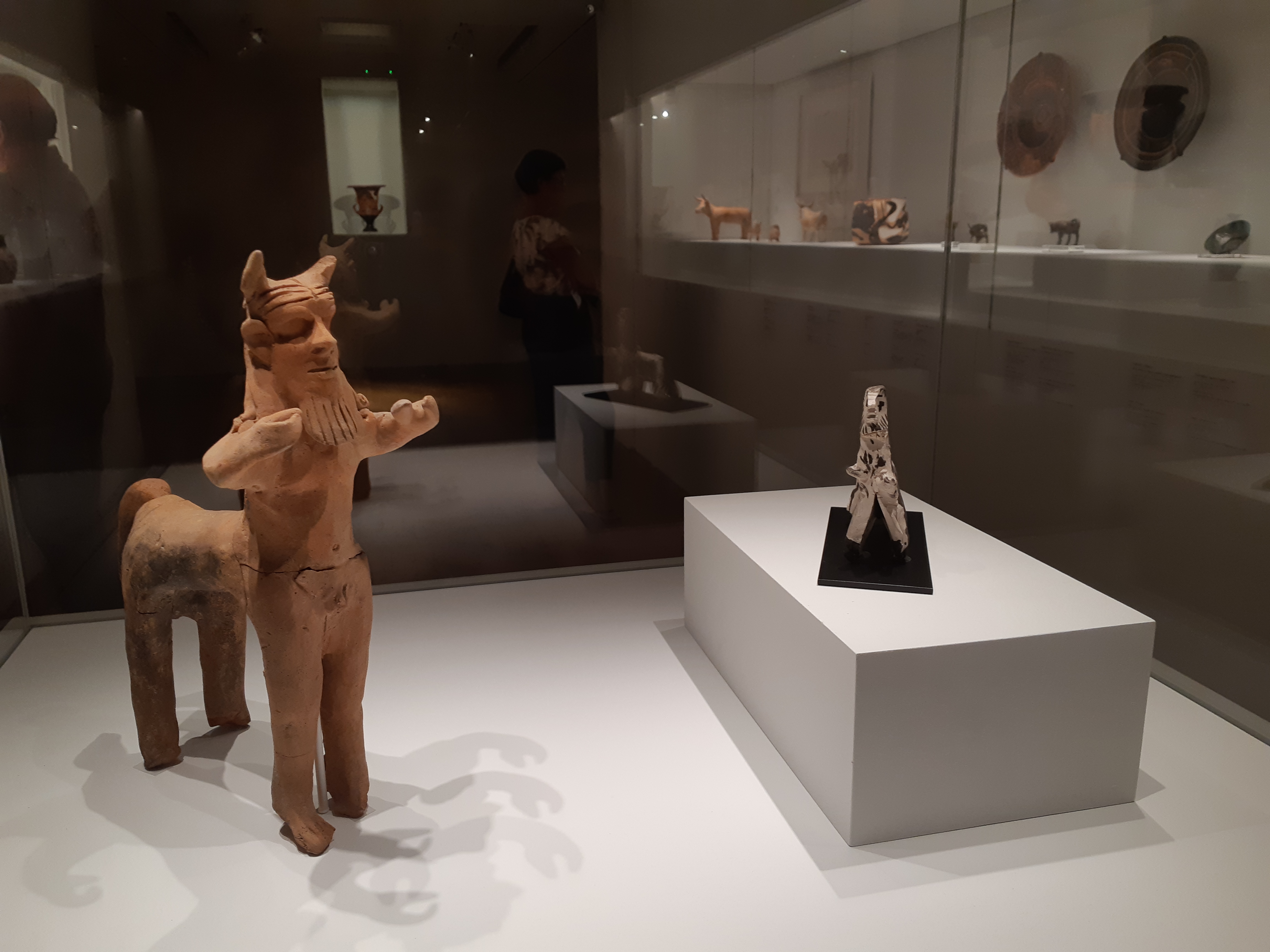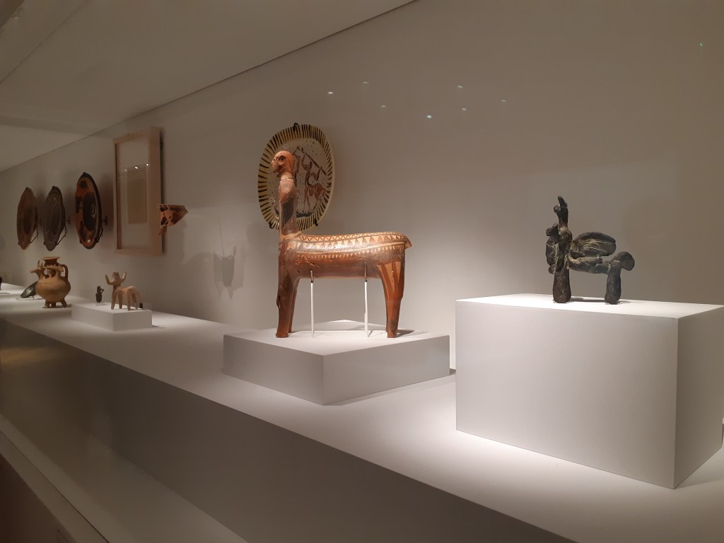 Sixty-eight rare ceramics and drawings by Picasso, featuring birds, animals, sea creatures, humans, and mythological beasts (centaurs, the Minotaur) or inspired by ancient drama and comedies, converse thematically for the first time with sixty seven ancient works, creating another Divine Dialogue between Greek antiquity and modern art.