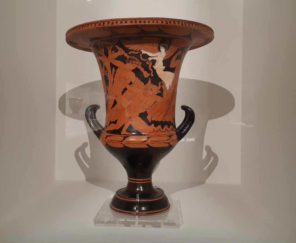 Κilling of the Minotaur by Theseus on a Late Classical Red Figure calyx krater (340–330 BC)