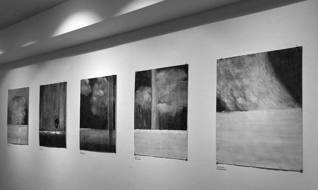 A legtöbb most kiállított felhőképen látható egy-egy ellenpont. Vagy a horizontot kijelölő vízszintes osztás (Várakozás; A sötétség felé), amely az Új kezdet és a Minden irányban végtelen címűeken egy-egy a képből vertikálisan kivezető oszloppal is összekapcsolódik. A felhőfüggönyön átsejlik egy Becsukódó kapu, amely végleg bezárul előttünk, és csak állunk Zárt kapuk előtt. A Remény egy aprócska fa kerek lombjában jelenik meg. A második Becsukódó kapu előtt baktató ló tükröződik az alul elterülő felületen, amely ezek szerint vízfelszín. Utalva ezzel a Teremtés második napjára, amikor „Isten elválasztá a mennyezet alatt való vizeket a mennyezet felett való vizektől. … És nevezé Isten a mennyezetet égnek”(Mózes I. 1, 6-8.) Tehát a víz és az ég eredete azonos. A felhő-szimbolika az előbbiekben vázolt jelentéstartalmakon túl, az égbolttal való kapcsolatra, a szárnyalásra, illetve a szabadságra és a végtelenre is utal.